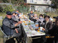 翌7日には、夫の姉達夫婦(半分は伴侶と死別)と長姉を介護する甥、我々を入れて、総勢10人が我が家に集って紅葉の中でのピクニックを決行。別の笑いとお喋りで賑わった日となる。94歳になろうとしている長姉が武田節を力強く唱ってくれたのには皆驚き、感心した。それこそ、彼女から逆に年下の私達が活力を貰ったことは後々語り継がれて行くことだろう。 6日、7日と連荘、お疲れさまでした!
